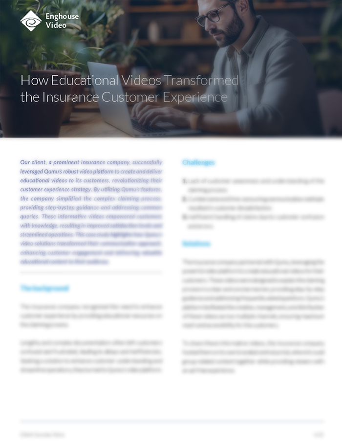 Unser Kunde, ein bekanntes Versicherungsunternehmen, nutzte erfolgreich die robuste Videoplattform von Qumu zur Erstellung und Bereitstellung von Lehrvideos für seine Kunden und revolutionierte damit seine Kundenerlebnisstrategie.